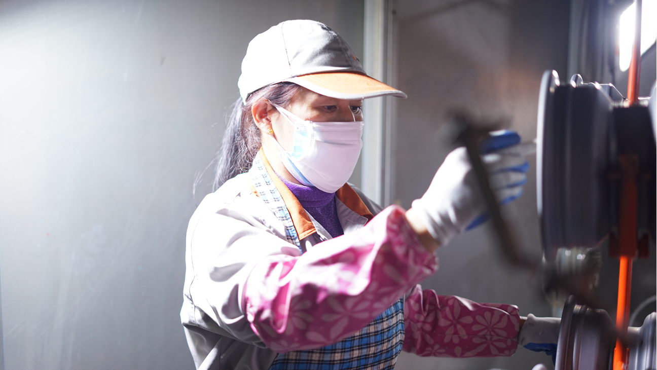 “剛開始進入崗位的時候,還是有些不太適應,只能強迫自己融入團隊,不斷提升自己技能,才能做好這個崗位。我在打磨產(chǎn)品的過程當中,也慢慢發(fā)現(xiàn)只有精益求精打磨出來的產(chǎn)品才能夠使下一道工序減少不良的產(chǎn)生,也給其他工序帶來一定的幫助,自己也感到很快樂。特別是在工作時幫助他人不斷提高工作質量,不斷專研打磨技巧,怎么樣用最快捷最方便的打磨技巧打磨產(chǎn)品,感覺到自己的進步,于是慢慢的就喜歡上這份工作。”這是吳愛芳這份工作的簡單總結。