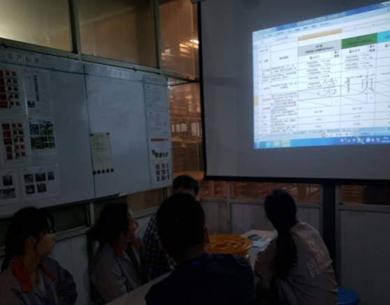 首先,利歐先生采用PPT講解對相關人員進行理論知識的灌輸,再從書面質量標準的要求,針對每個工藝和生產區域進行要點剖析。并結合實際的區域缺陷分布和缺陷類別進行詳細講解,通過實物案例和理論知識對比分析,讓現場的所有參訓人員對檢驗標準有了更加深刻的理解,并高度認識到世界先進公司的質量標準的苛刻性和嚴謹性。